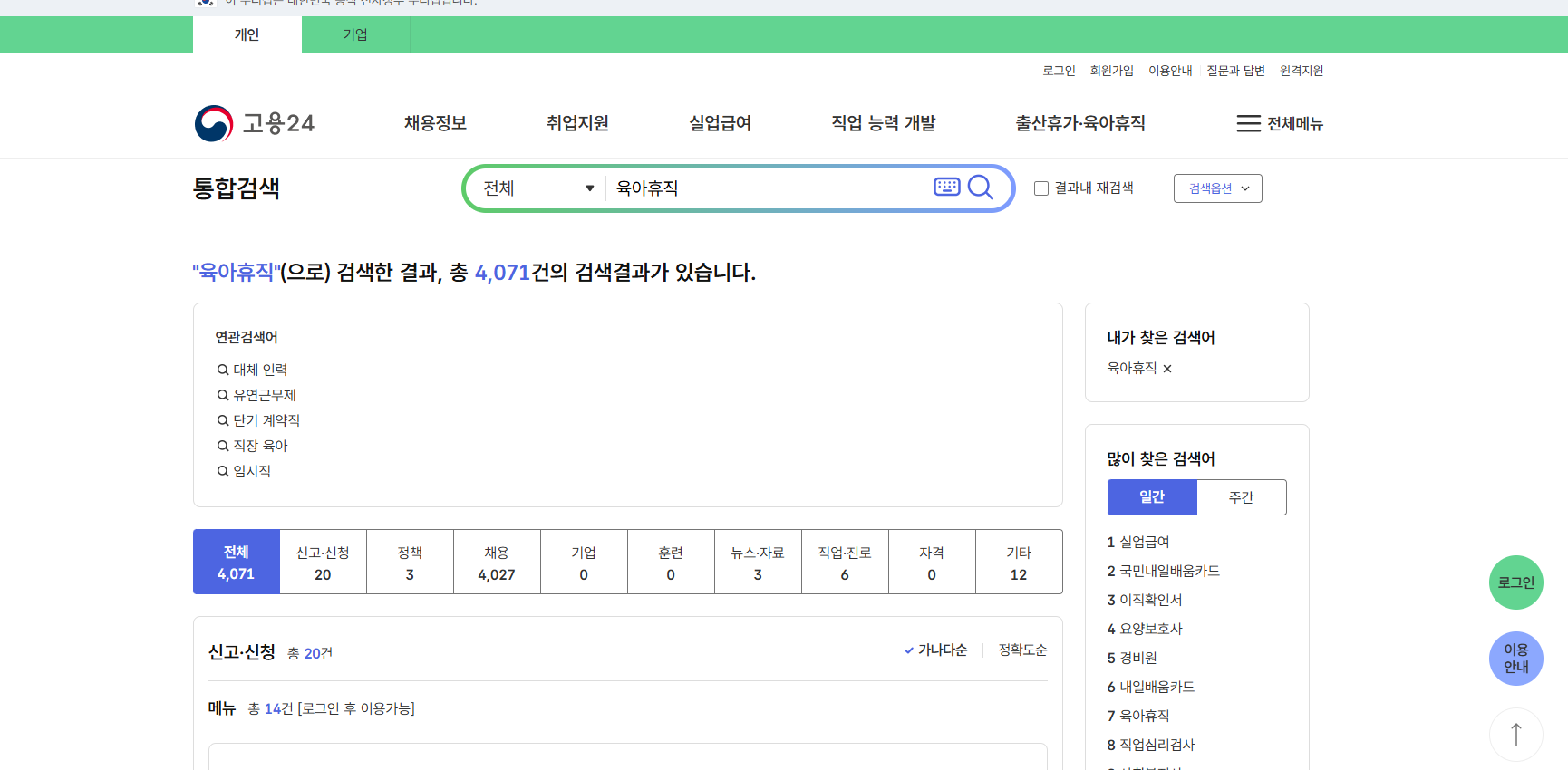 - 고용보험 홈페이지에 육아휴직 시작 신고