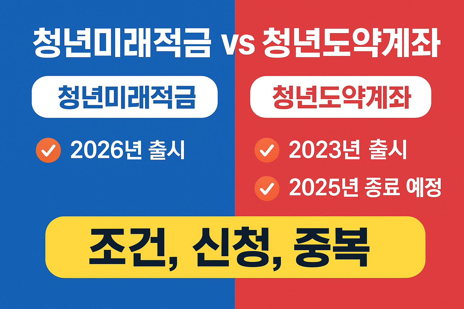 요즘 청년 분들 사이에서 이재명 정부의 청년미래적금과 가 많이 화제죠. 각각 어떤 조건이고, 언제부터 신청할 수 있는지, 윤석열 정부 때 만들어진 청년도약계좌와의 중복 가입은 가능한지 궁금하실 텐데요. 부담 없이, 핵심만 쏙쏙 정리해드릴게요!