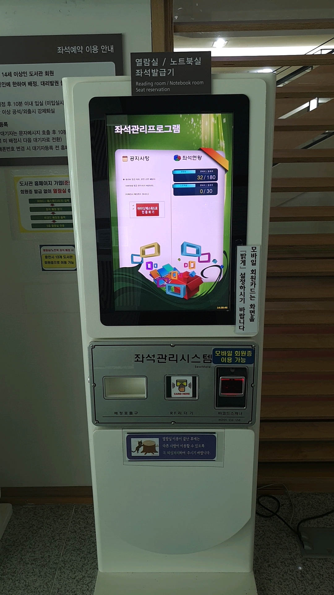 노트북실은 열람실 안에 있으니 1층 좌석발급기에서 노트북실을 선택하고 똑같이 하시면 됩니다!