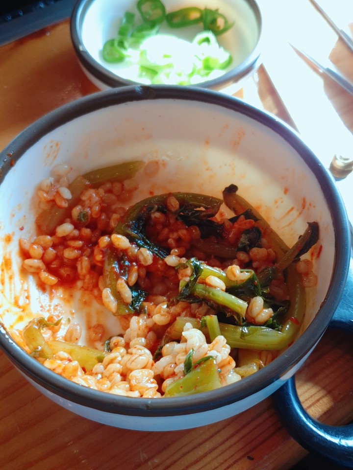 보리밥에 열무와 참기름, 고추장을 쓱쓱 비벼먹으면 짱짱