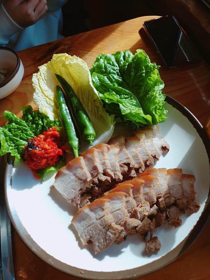 저는 해물버섯파전을 먹어보고 싶었는데 동생이 아침부터 보쌈을 먹고 싶다고 해서ㅠㅠ 보쌈 소 짜를 시켰어요