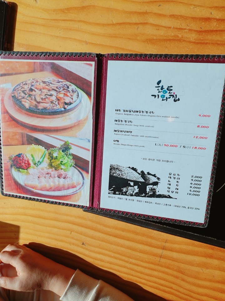 메뉴에 칼국수는 제주 감자옹심해물 손칼국수와 그냥 해물손칼국수 두 가지 종류가 있는데 저는 다시 먹는다면 또 감자 옹심 해물 손칼국수를 먹을 것 같아요