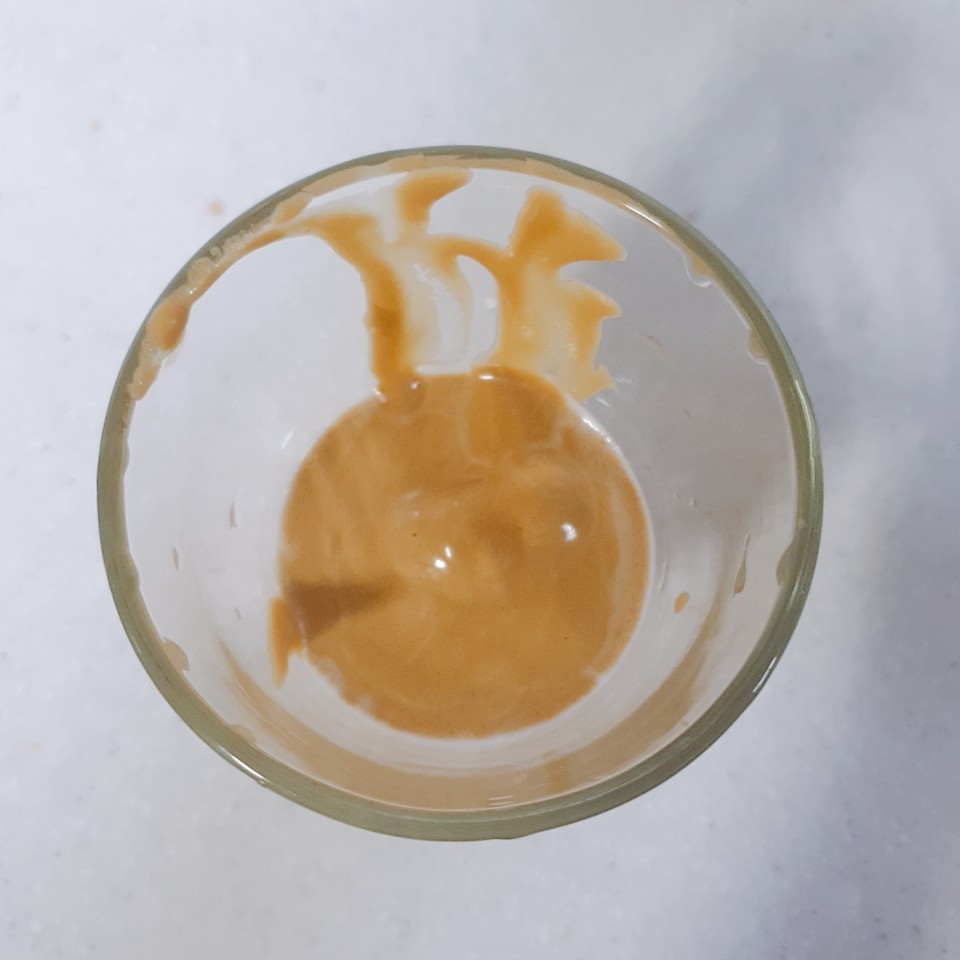 하지만 아직도 저 거품 밑에는 커피 설탕물이 조금 있어요