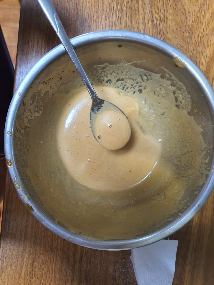 저는 중간에 물이 너무 많아서 설탕과 커피가루를 더 첨가해줬어요