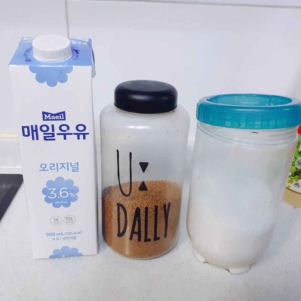 자 이제 다 만드셨으면 우유 한 컵을 준비해 주세요