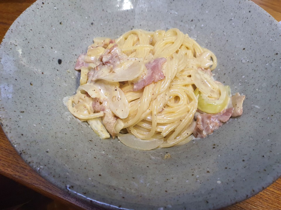 쨘! 맛있는 크림 파스타를 완성하였습니다~