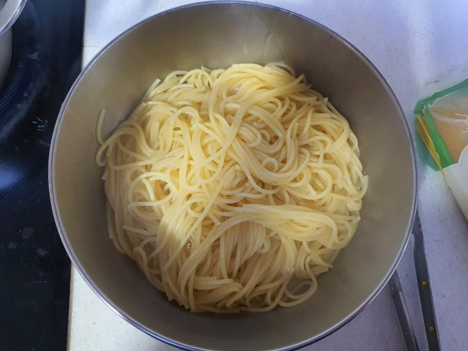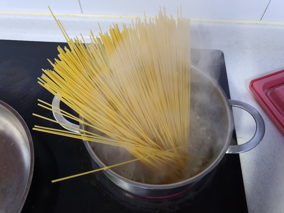 2. 파스타 면을 삶는다 (8분 정도, 물에 소금 넣어서)