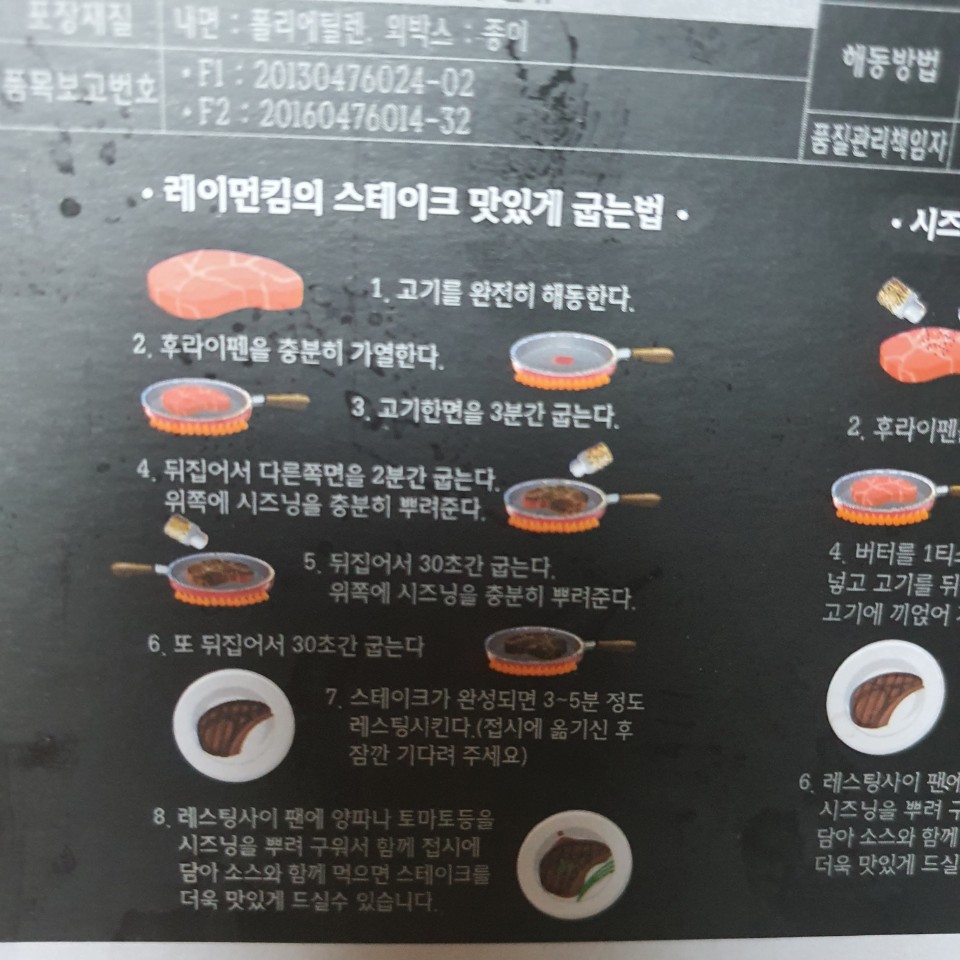 포장지에 레이먼킴의 스테이크 맛있게 굽는 법이