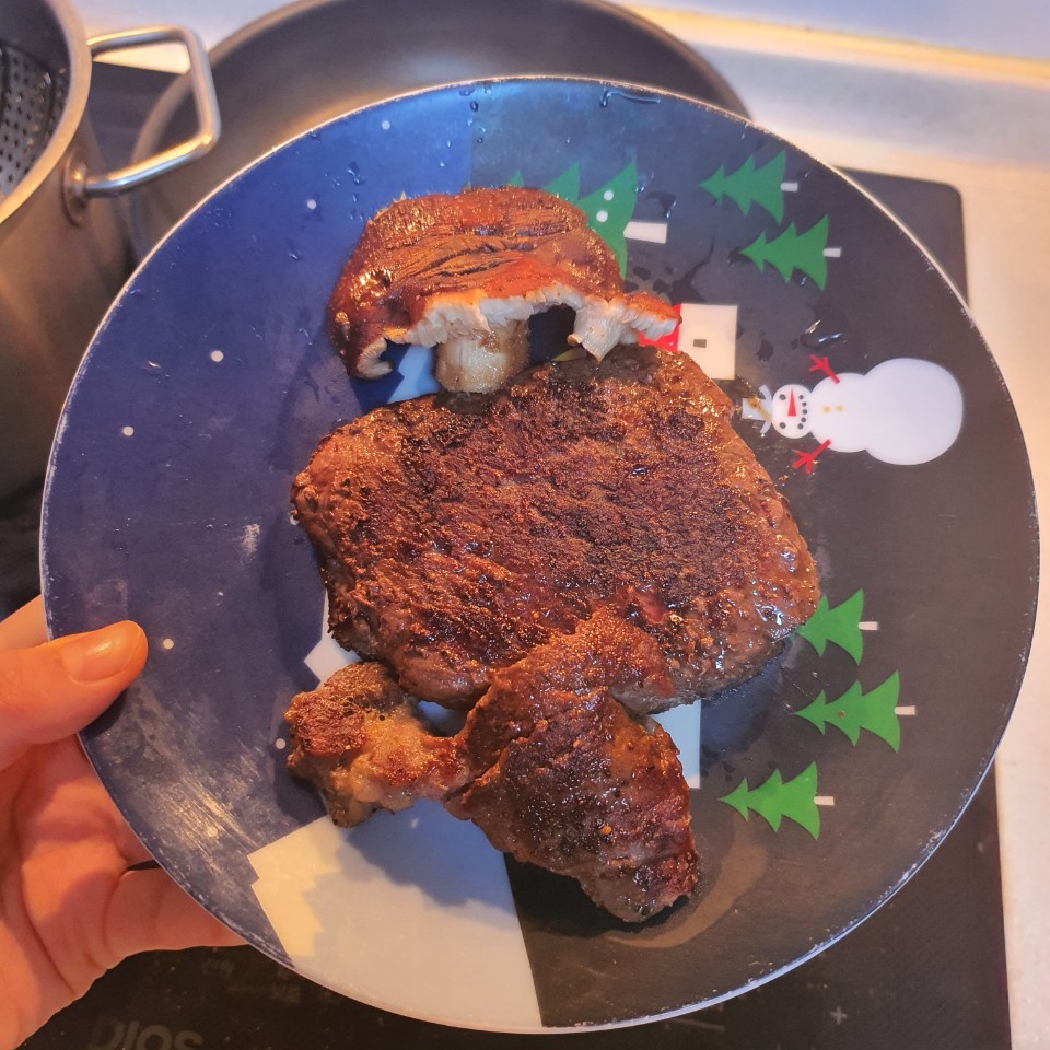 스테이크 옆에 버섯은 제가 따로 구입한 거예요