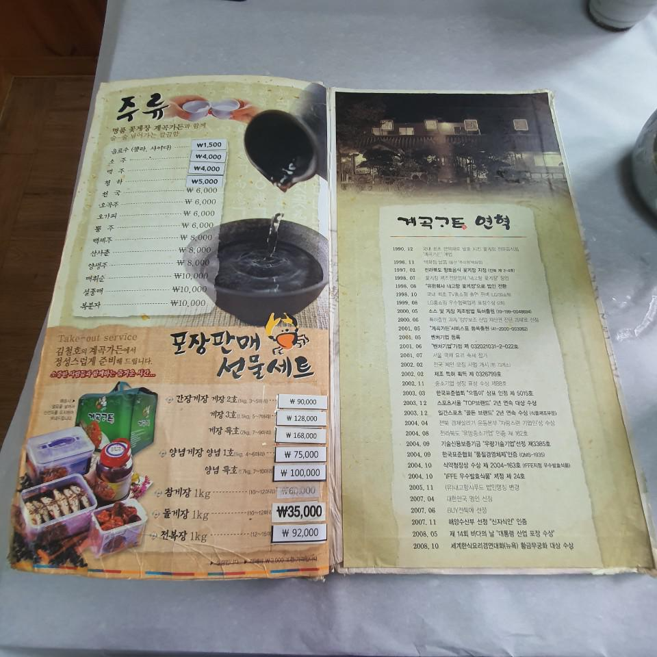 그럼 계곡가든 꽃게장의 메뉴와 가격을 살펴볼게요