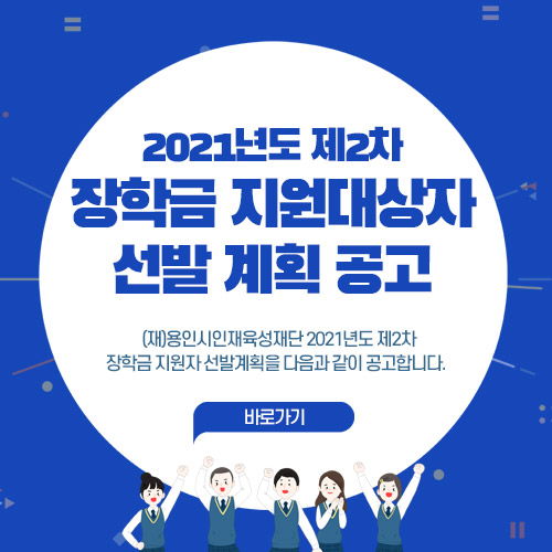 오늘은 용인시인재육성재단 2021년도 제2차 장학금 지원자 선발계획 중 자립장학금에 대해 소개해 드리겠습니다!