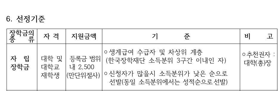 1). 자립장학금(전문대생․대학생)