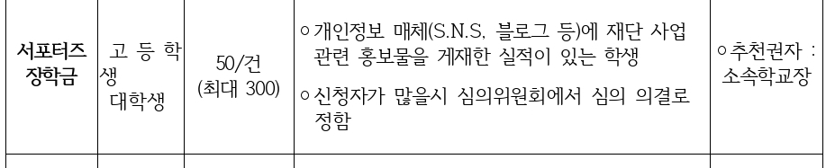 ★ 서포터즈 장학금은 홍보실적에 따른 보상금으로 지급. 타 장학금과 중복지원 가능
