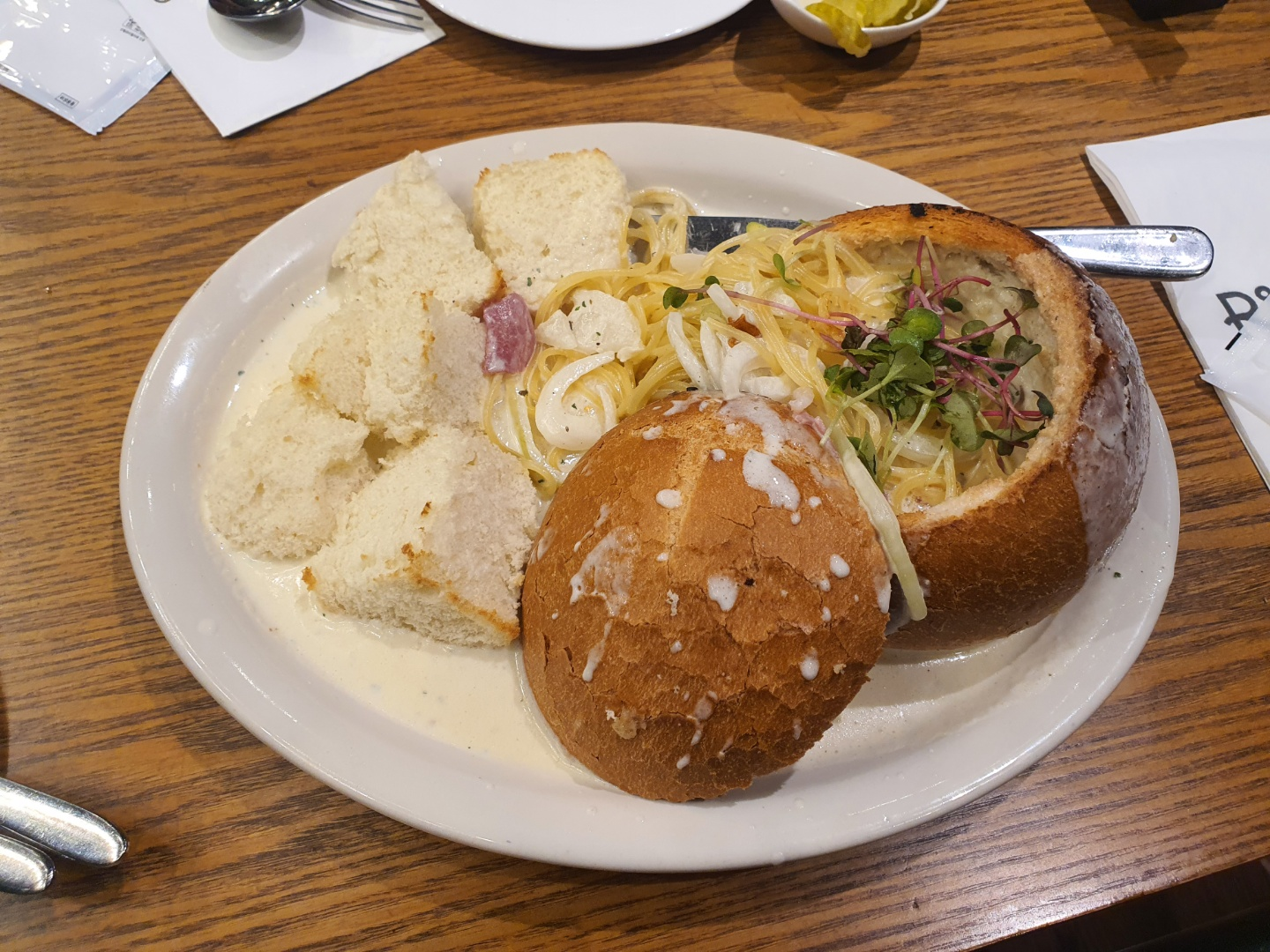 빠네는 빵 속을 파서 그 안에 파스타를 담아서 주는 파스타 종류입니다!