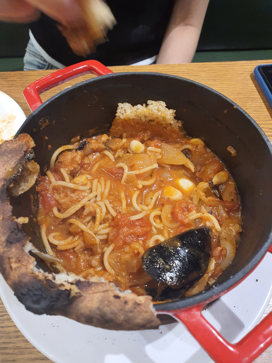 토마토 덩어리랑 마늘, 홍합 등 다양한 재료가 들어가 있어서 더 맛있었던 것 같아요~!