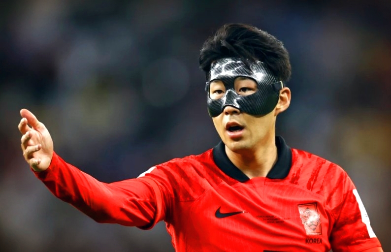 손흥민 선수가 부상으로 인해 마스크를 쓰는