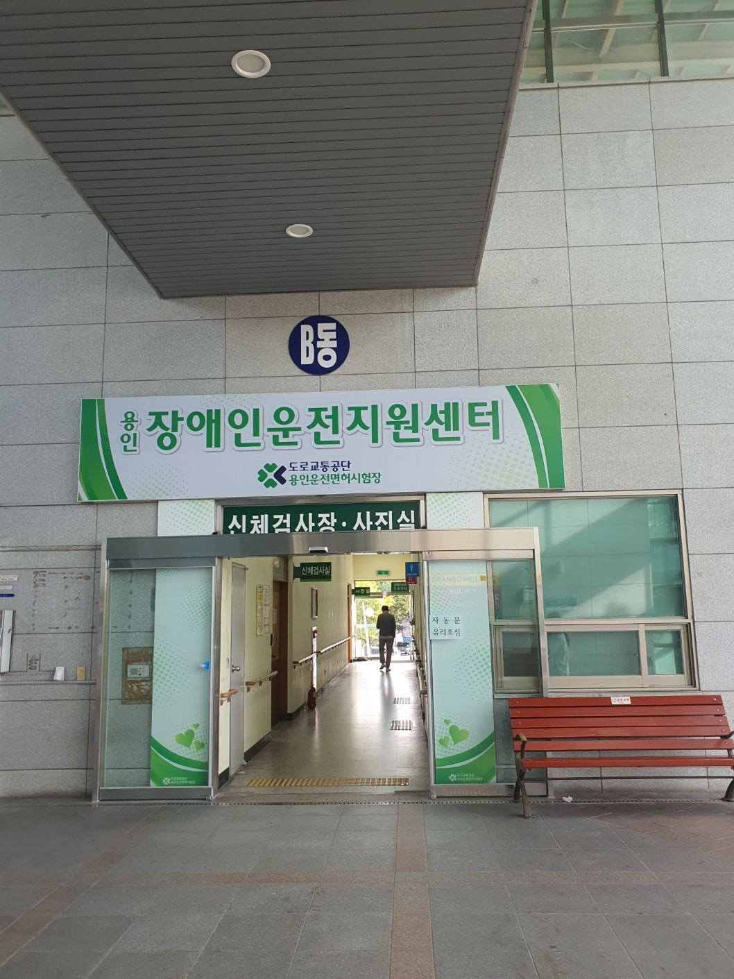 필기시험을 보기 전에 신체검사를 해야 합니다. 작성한 응시원서를 가지고 신체검사장으로 가시면 됩니다. 아래 사진에서 보시는 것처럼 옆건물 b동으로 가시면 신체검사장이 있습니다. 시력 검사를 진행합니다.