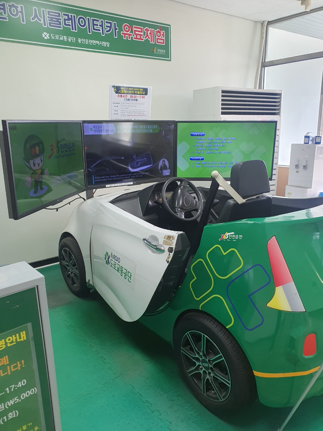 본관 2층에는 실제 기능/도로 주행을 연습할 수 있는 시뮬레이터카가 마련되어 있습니다. 가격은 5,000원입니다.