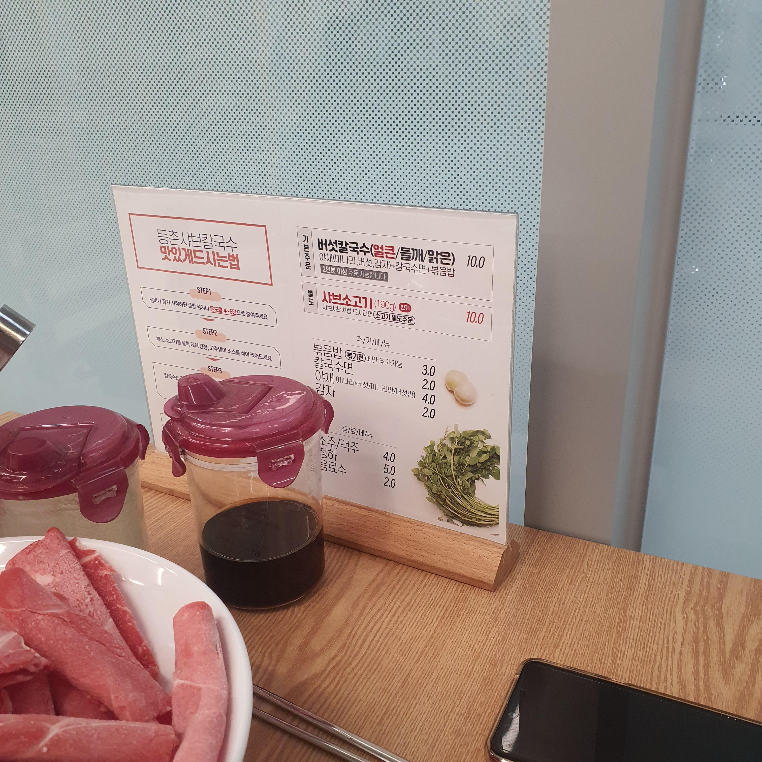 기본에서 버섯칼국수 얼큰/들깨/맑은 중에서 선택하시고 고기는 별도라 샤브소고기 추가하시면 됩니다